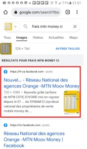 Nous retrouvons la même image dans une publication de la page Facebook du Réseau national des agences Orange-MTN Moov Money. Le texte de la publication dit ceci : « Nouvelle grille tarifaire de MTN COTE D’IVOIRE mis en vigueur depuis le 01 Juin 2020 ». Il faut dire que cette publication a été faite le 12 juin 2020 à 20h15.