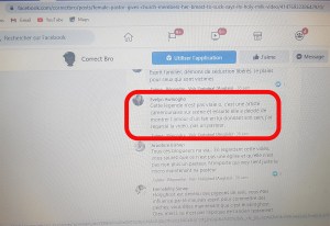 Le fact-checker s’est focalisé sur un commentaire indiquant que la légende est fausse. Pour l’auteur du commentaire, il s’agit d’une artiste camerounaise sur scène qui a décidé de montrer l’amour d’un fan en lui donnant son sein (voir le commentaire ci-dessous en capture d’écran).