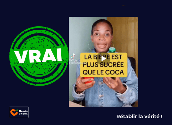Alors que la vidéo devient très virale sur la toile, Bénin Check, comme à ses habitudes, a déployé ses stratégies, pour s’assurer de la véracité ou non des propos de ladite vidéo. Les sodas classiques (colas, boissons gazeuses sucrées) ont effectivement un index glycémique autour de 60, ce qui correspond à une valeur moyenne. Ils contiennent beaucoup de sucres simples. Une canette de 33 cl apporte environ 35 à 40 g de sucre, selon la même source.